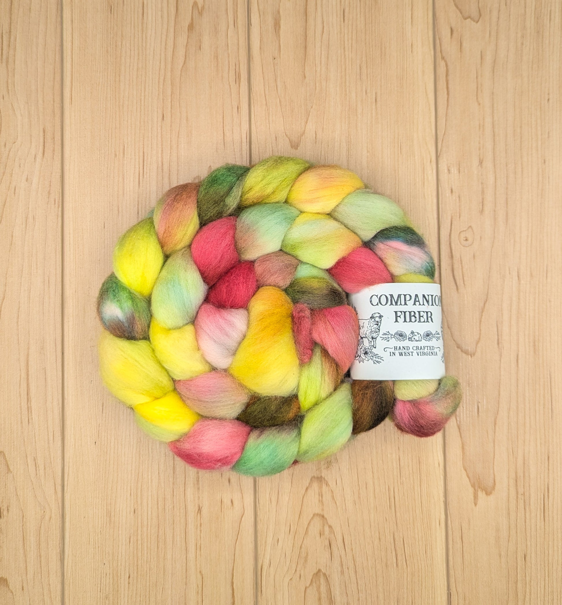 What makes Companion Fiber hand dyed wool special? Our colors are curated to create a beautiful variegated effect in your spun yarn. The specialized dye process makes fiber that is fluffy and easy to spin. This eliminates any need for additional carding.