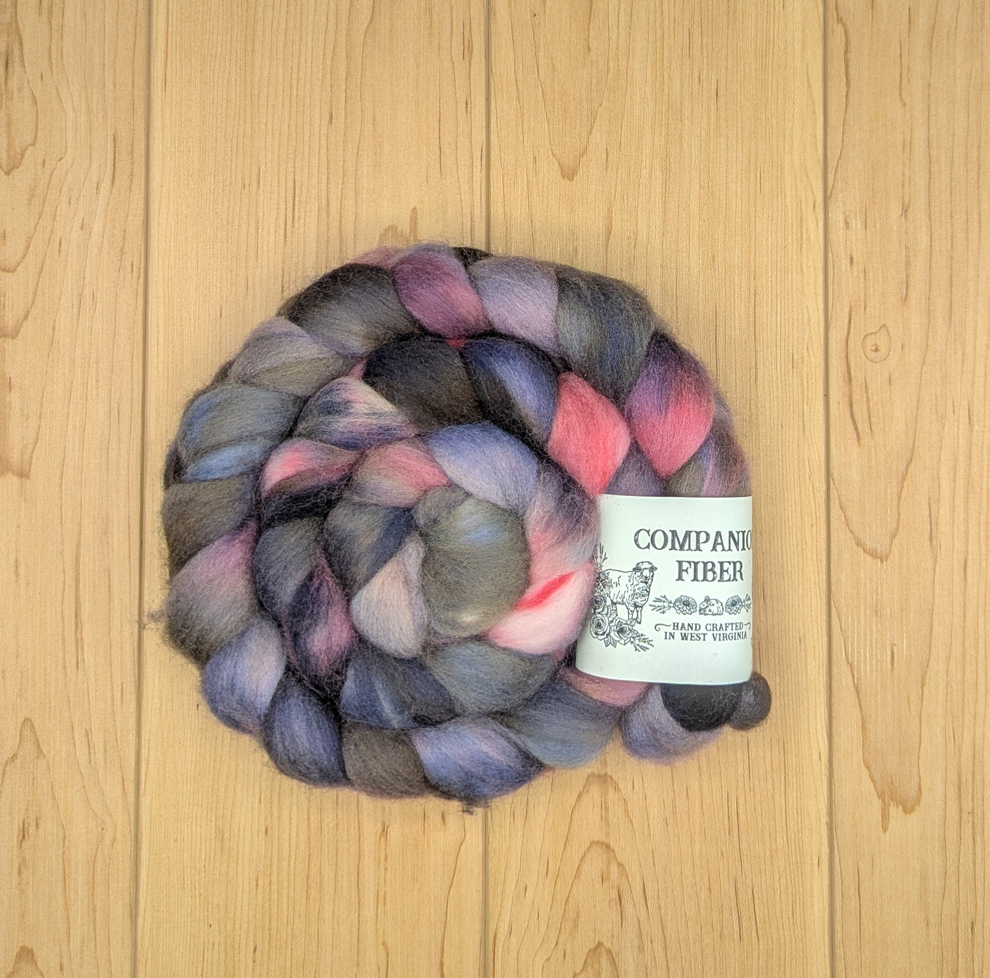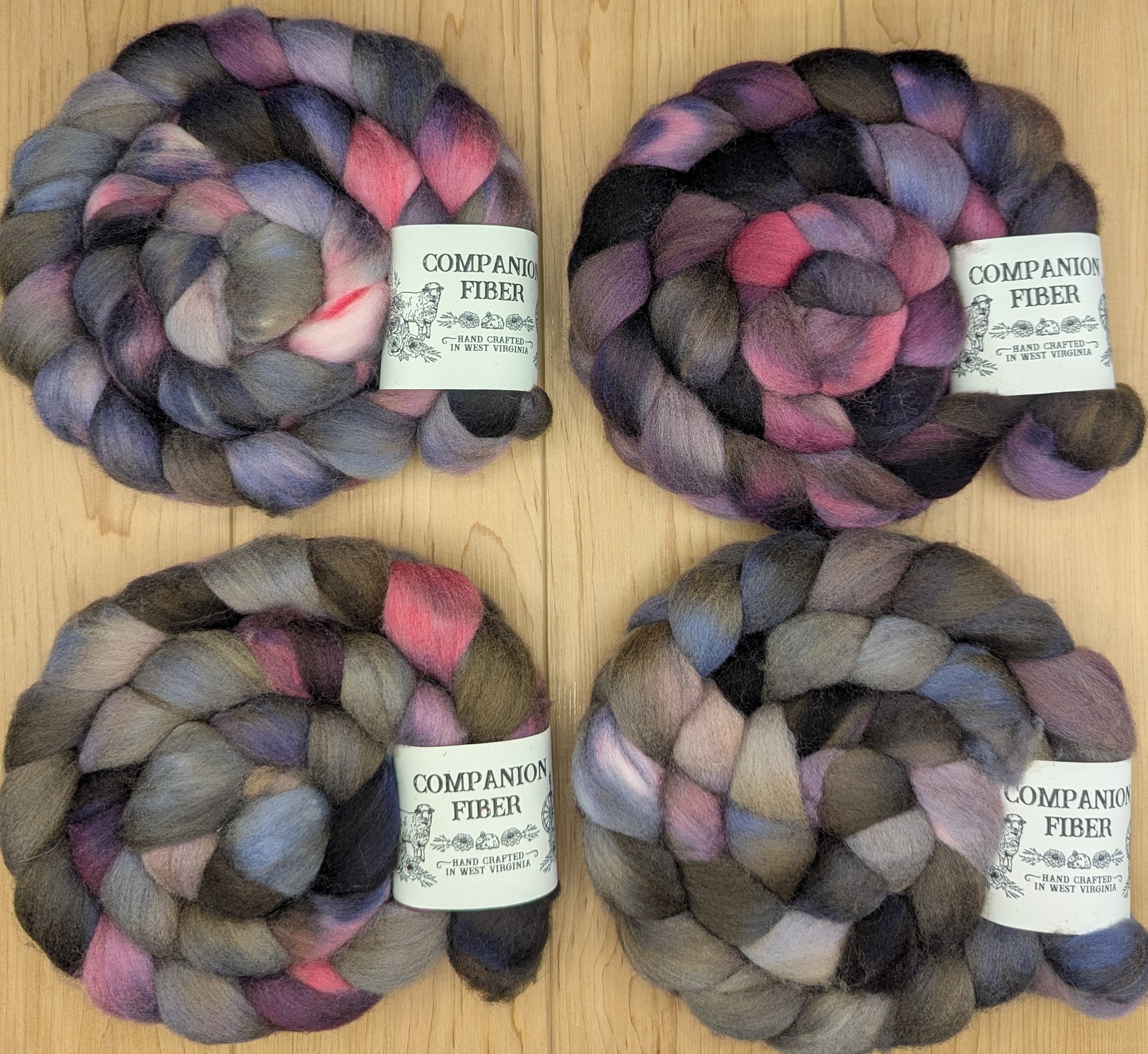 What makes Companion Fiber hand dyed wool special? Our colors are curated to create a beautiful variegated effect in your spun yarn. The specialized dye process makes fiber that is fluffy and easy to spin. This eliminates any need for additional carding.