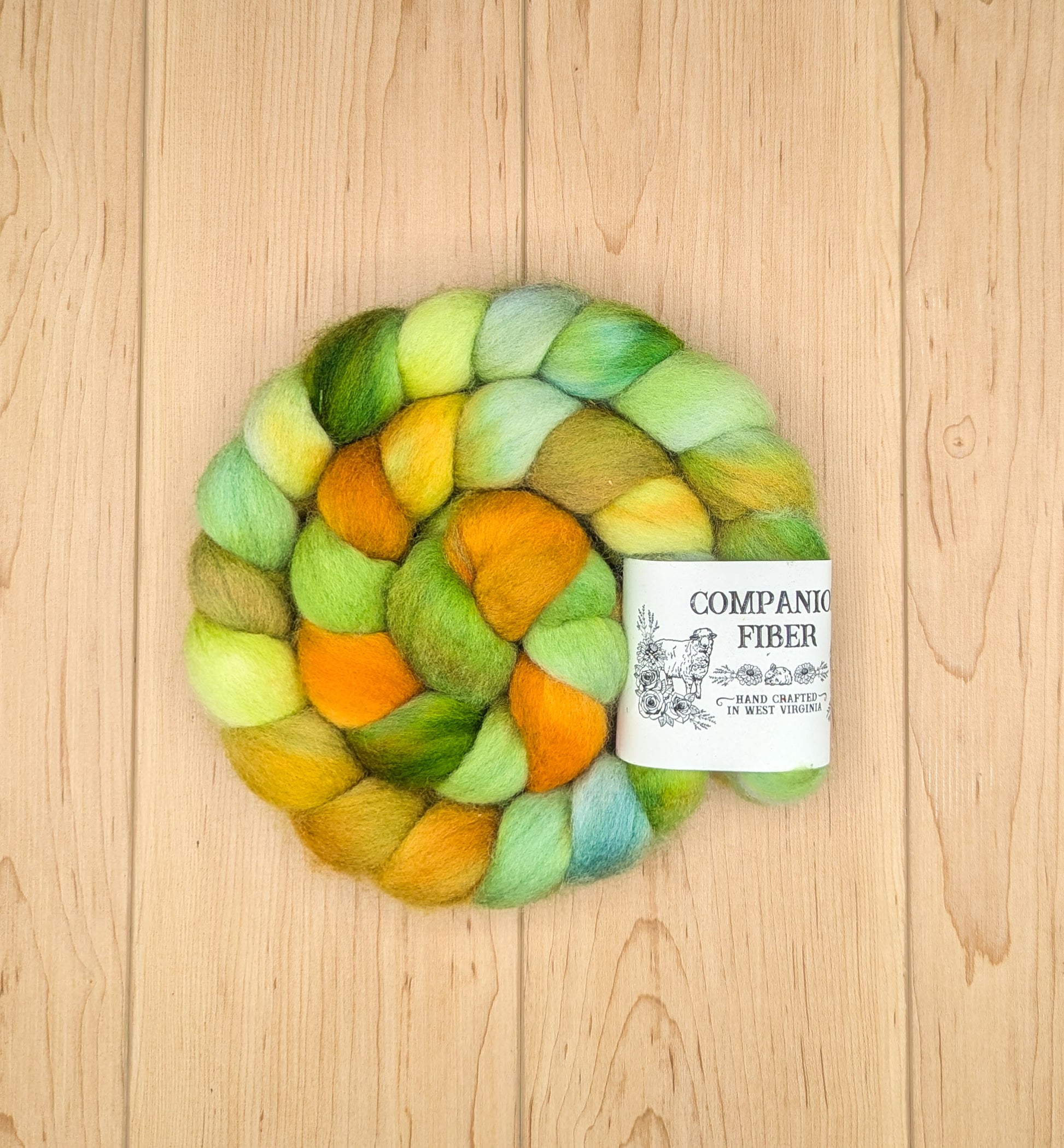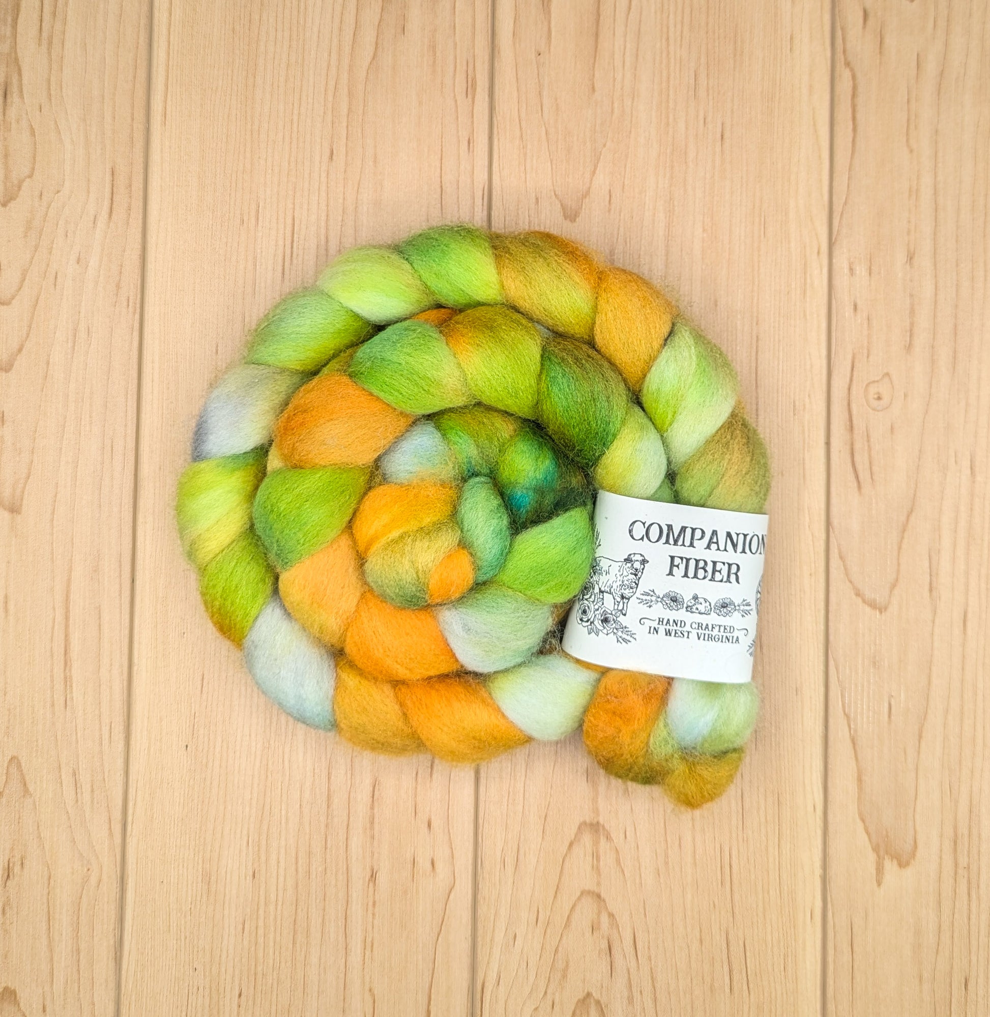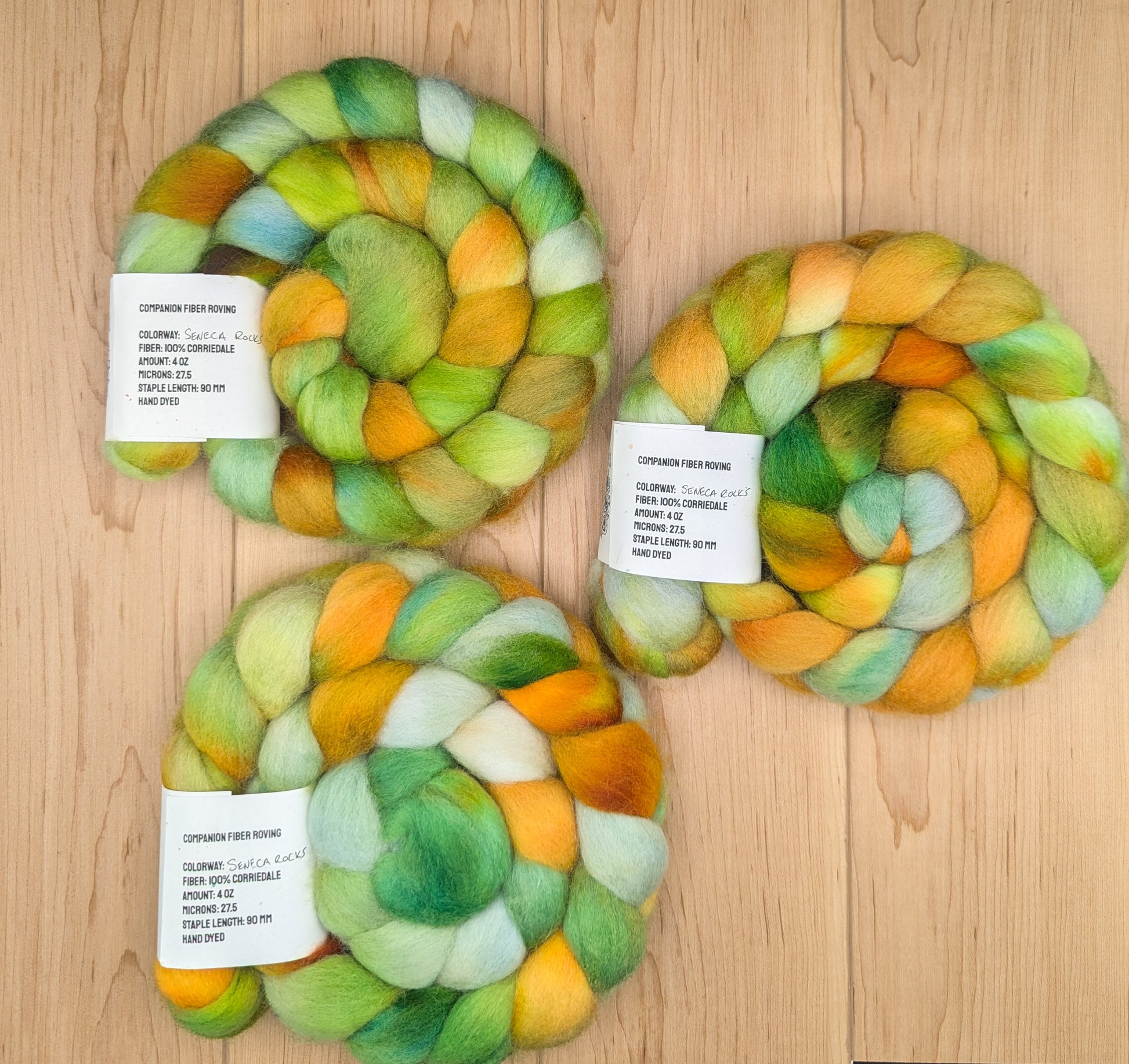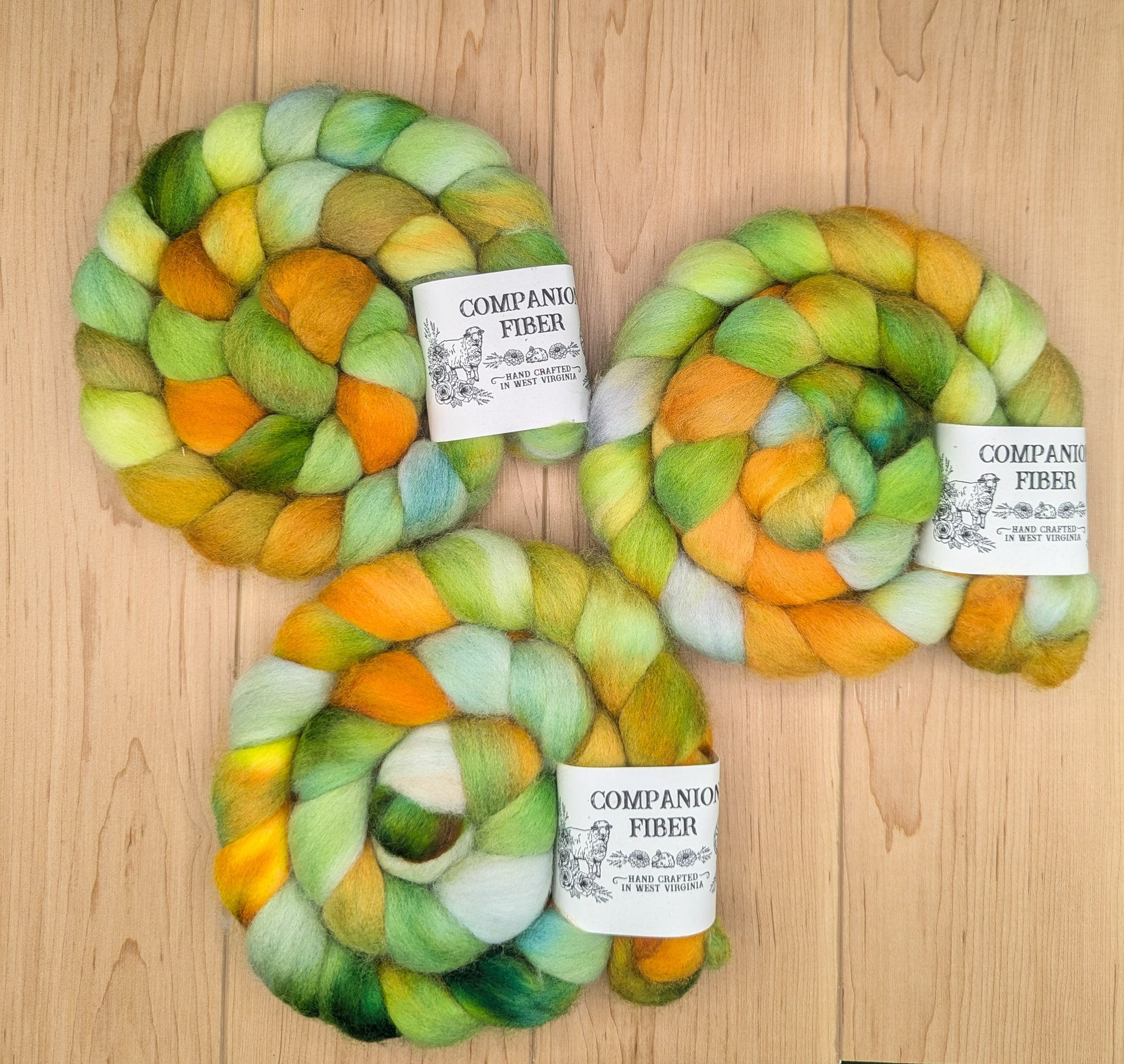 What makes Companion Fiber hand dyed wool special? Our colors are curated to create a beautiful variegated effect in your spun yarn. The specialized dye process makes fiber that is fluffy and easy to spin. This eliminates any need for additional carding.