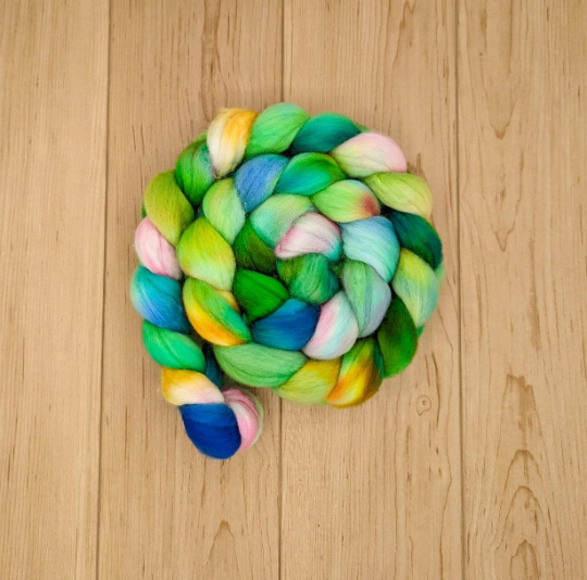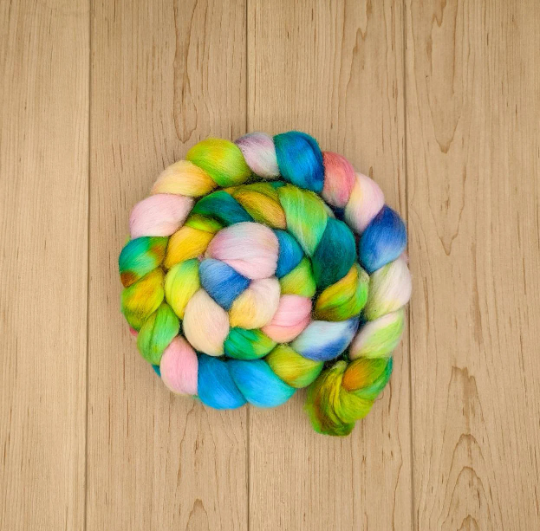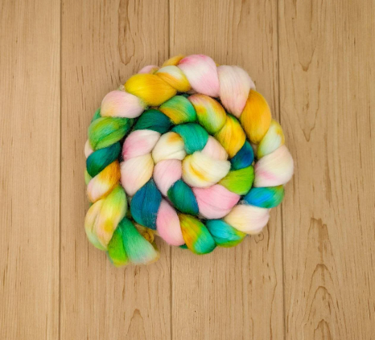 What makes Companion Fiber hand dyed wool special? Our colors are curated to create a beautiful variegated effect in your spun yarn. The specialized dye process makes fiber that is fluffy and easy to spin. This eliminates any need for additional carding.