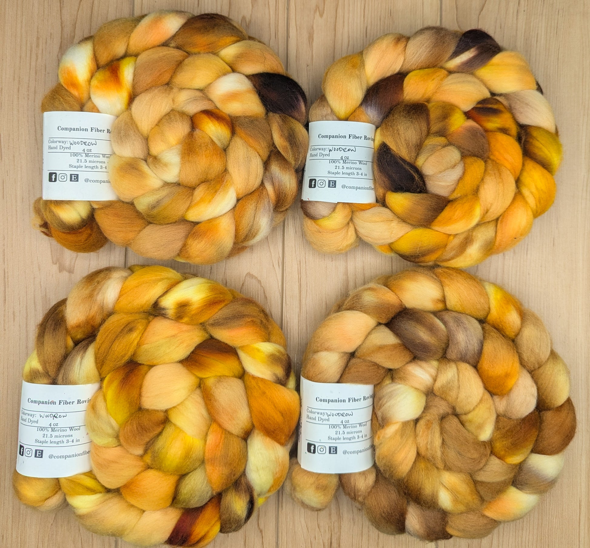 Each braid of individually dyed fiber contains approximately 4 ounces of wool. Shipping times are one week from order date. This roving is dyed to order. If it is in stock, shipping date will be 1-2 business days. There are two options for bases: